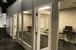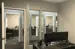 The offices have a full glass panel design to give the office space an open and inviting feel, and they use a gray panel/extrusion color that is paired with white glass doors to complement one another and blend into the room’s existing color scheme.