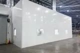 The new enclosure measures 4,292 square feet and stands at 17 feet, 2 inches tall, featuring both 9’ and 17’ wall sections for varied equipment heights. Constructed with 3-inch-thick FRP and gypsum wall panels in a bright white finish, the structure offers durability and easy maintenance in an active industrial environment. The 22-gauge steel B-deck roof supports lighting, ceiling components, and HVAC systems for reliable overhead performance.