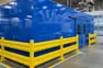 To match the customer’s facility aesthetic, the walls were powder-coated blue, with the aluminum extrusions and trim painted to match for a clean, cohesive finish. The enclosure also features sliding half-glass doors with tempered glass, providing visibility into the workspace while containing sparks and debris. Designed specifically for interior use, this welding enclosure created a defined, safer work zone without disrupting surrounding operations, proving that functional safety solutions can still look sharp on the production floor.