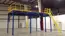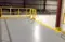 The mezzanine includes a custom, OSHA-approved alternating tread stair system. The stairs offer a safe, convenient ingress/egress solution for the 13' deck while taking up minimal floor space. The platform railing is powder-coated in safety yellow with royal blue columns, beams, and bracing.