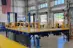 The platform is formed from royal blue powder-coated columns, braces, and beams and performance yellow railing. Steel diamond plate provides the structure with a long-lasting, durable decking surface. Lift-out railing is used to enclose the deck, allowing any section of the rail to be opened up for easy equipment access.