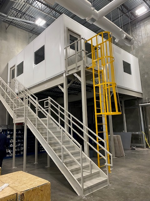 Panel Built’s cage ladders offer a secure, durable solution for accessing elevated platforms, rooftops, and mezzanines in both indoor and outdoor environments. Designed for safety and compliance, each fixed cage ladder is custom fabricated to your facility’s specific height, space, and load-bearing requirements. Whether you’re outfitting a new modular office or adding a ladder to an existing structure, our ladders ensure reliable, OSHA-compliant access.