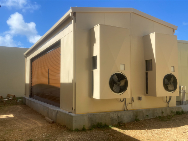 A vital space-communicating transformer on a U.S. military base in Guam was exposed to Category 5 hurricanes, with replacement costing millions and requiring over two years—making protection the only viable option. Panel Built delivered a fully welded, two-piece prefabricated E-House engineered for 210 mph winds, equipped with 18-ton HVAC and impact-rated doors, then shipped across the Pacific and crane-welded on-site for immediate deployment. This modular electrical building eliminated years of risk and downtime while proving E-Houses can thrive in the harshest, most remote environments.
